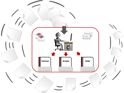 • Document routing: Bots recognise the document type (invoice, order, contract) and forward the data to the correct department.